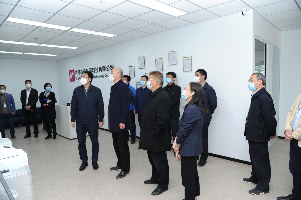 在简码基因科技有限公司,陈克正询问了马翠萍教授科研团队攻关进展情况,并向其取得的显著成绩表示祝贺。陈克正指出,马翠萍教授团队为新冠肺炎防治作出了贡献,为学校争得了荣誉,对提升学校的知名度和影响力起到了很好的作用。马教授带领团队成员多年刻苦攻关、心无旁骛、努力拼搏,为全校师生树立了很好的榜样,值得大家学习。青科大将继续全力搭建广大师生勇攀科技高峰、实现创新梦想的舞台,让有激情、有追求、有梦想的师生在科大这片沃土上施展才华、激扬梦想;希望马翠萍教授带领团队在今后的新征程上继续发扬“科大精神”,践行“橡胶品格”,为学校的“双一流”建设做出更大成就。