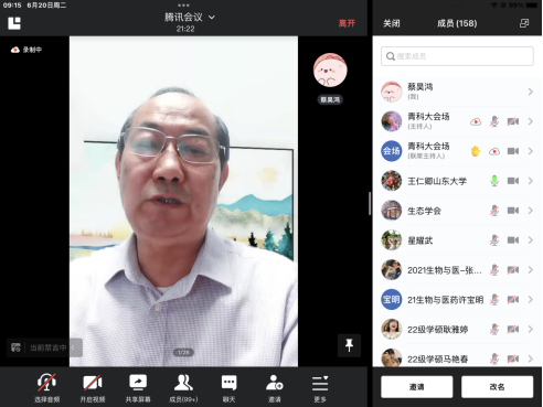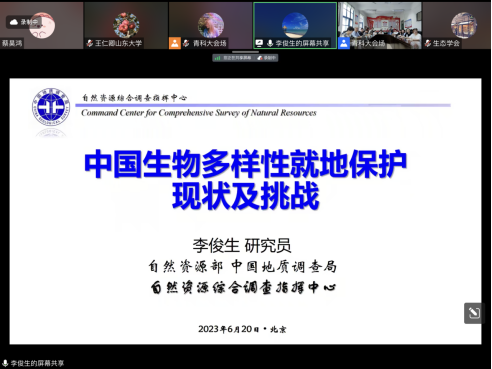 2023年6月20日上午,由山东省生态学会与青岛科技大学海洋学院共同主办的“生态大讲堂”系列讲座,通过线上与线下结合的方式顺利举行。报告会邀请中国地质调查局自然资源综合调查中心副总工程师-李俊生研究员,中国科学院西双版纳热带植物园-星耀武研究员,分别为师生带来题为“我国生物多样性就地保护现状及挑战”、“北温带木本植物多样化历史”的学术讲座。本次讲座由山东省生态学会刘大胜秘书长与青岛科技大学海洋学院王硕教授主持,来自各地高校及科研机构的300多位学者和研究人员参与了此次会议。