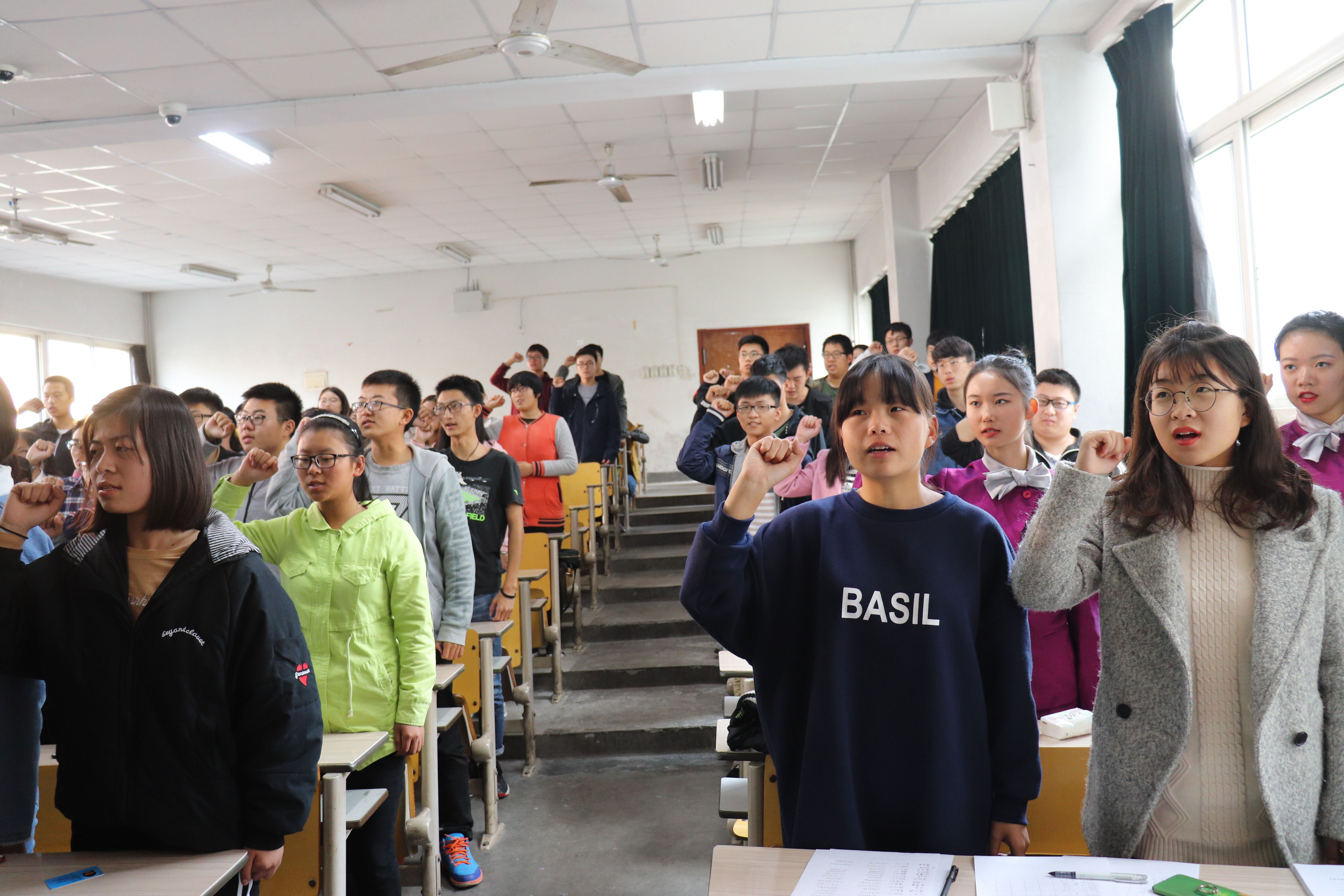 曲艺协会会长和他的搭档有趣的相声表演,为现场活跃了气氛,调动了与会者的积极性。有趣的表演之后,高小宁对海院维权日进行了简要叙述。拟定海院维权日为每月15日,一月一次收发调查问卷,成立QQ工作群,指定建言献策奖励制度,每月开展权益日例会等。细致的讲解让同学们对权益日活动的开展有了深入的了解。“当我们在权益上,利益上,甚至是人格上受到不公平的待遇时,我们要善于利用合法方式,积极捍卫自身权益。”权益部杨帆上台带领大家宣誓。