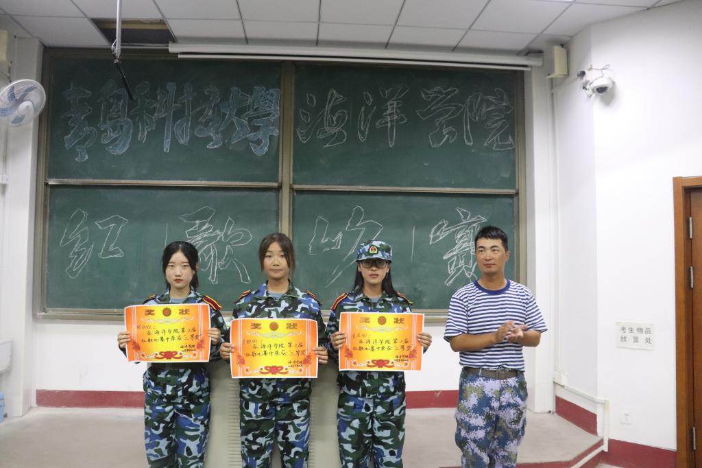 在各参赛队伍歌曲演唱结束后,茅教官、山教官发言时谈到,本次活动有利于培养学生们的爱党爱国精神,举办得十分有意义;并表达了祝福,希望海洋学院学子未来越来越好。