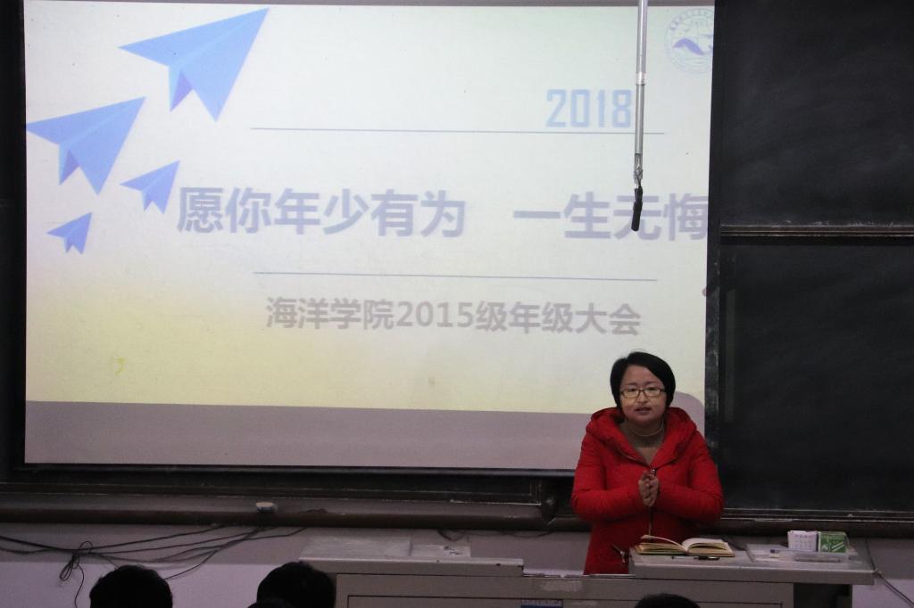 12月25日下午3:00,海洋科学与生物工程学院在一教202召开了2015级年级大会。本次大会由15级辅导员辛雪琼老师主持召开,海洋学院2015级全体同学参加。
