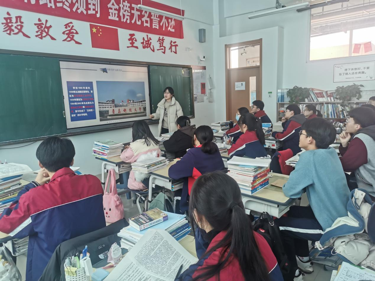 我向学弟学妹们做完报告,正好下课,有许多同学聚到一起,咨询更多关于青科大的信息,分数线、专业水平、考研率以及交通位置、学校面积等等。相信经过这次报告,青州中学的学弟学妹们了解到更多关于青岛科技大学的信息,便于树立起自己的目标院校、进一步努力学习,我也能够把这半年在青科的收获与快乐传递给大家,让学弟学妹们感受到青科大家庭的温暖与奋进。