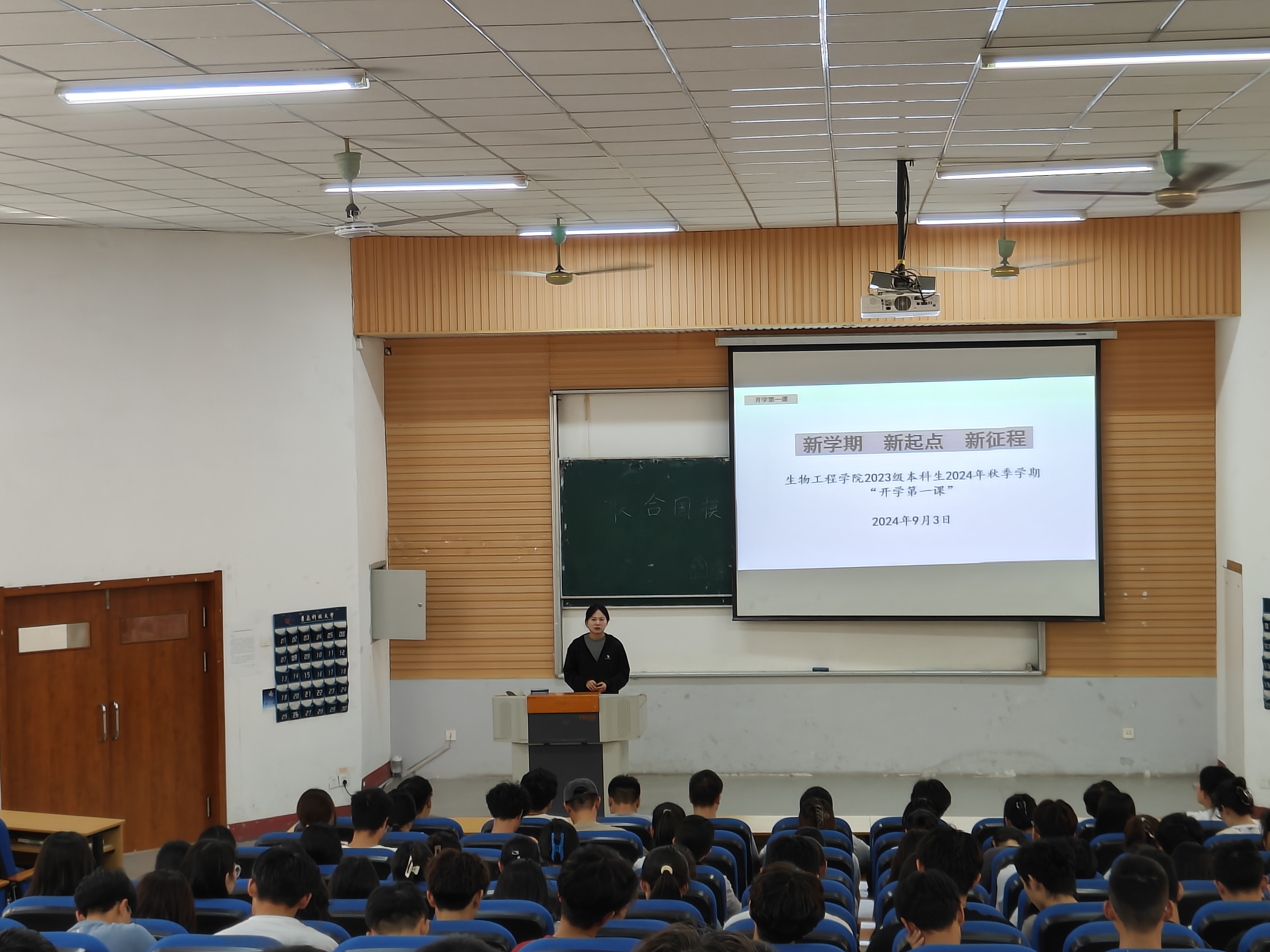 为进一步加强学生思想政治教育,提高学生服务意识、奉献意识和校园安全意识,帮助学生更好适应新学期的校园生活,9月3日,生物工程学院2023级学生秋季学期“开学第一课”顺利召开。会议由2023级辅导员郭颖主持,全体2023级学生参加。