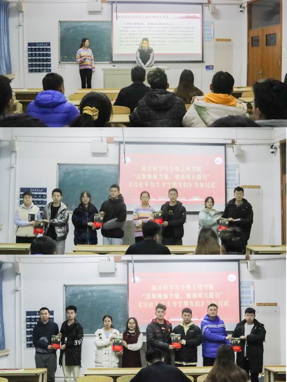 会上,收到马书记赠书的名学生代表将《习近平与大学生朋友们》一书传递给20级班长团支书,作为学院“个十百千万”读书接力计划的启动仪式。轻化192班团支书张卓尔带领大家学习副校长丁林在学代会上的讲话,并向全体青年学生的发出倡议:坚定理想信念,做胸怀大局的青科大人;紧跟时代步伐,做守正创新的青科大人;传承科大家风,做自强务实的青科大人;坚持五育并修,做全面发展的青科大人。