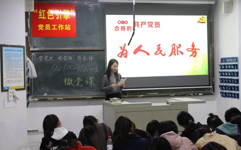 活动由“红色引擎”党员工作站站长刘金岭和指导老师王祥梅主讲。她们从党的发展历史、对党的认识、党员义务与权利等几个方面向同学们展开介绍。自1921年建党以来,中国共产党走过了一段艰难的风雨历程,时至今日,我们党日益茁壮,历经了几代党员的艰苦奋斗,青年学生在大学这个重要阶段,更需要继承和弘扬中华民族的优良传统,弘扬爱国奋斗精神,自觉恪守公民道德的基本规范,努力养成良好的道德品质。