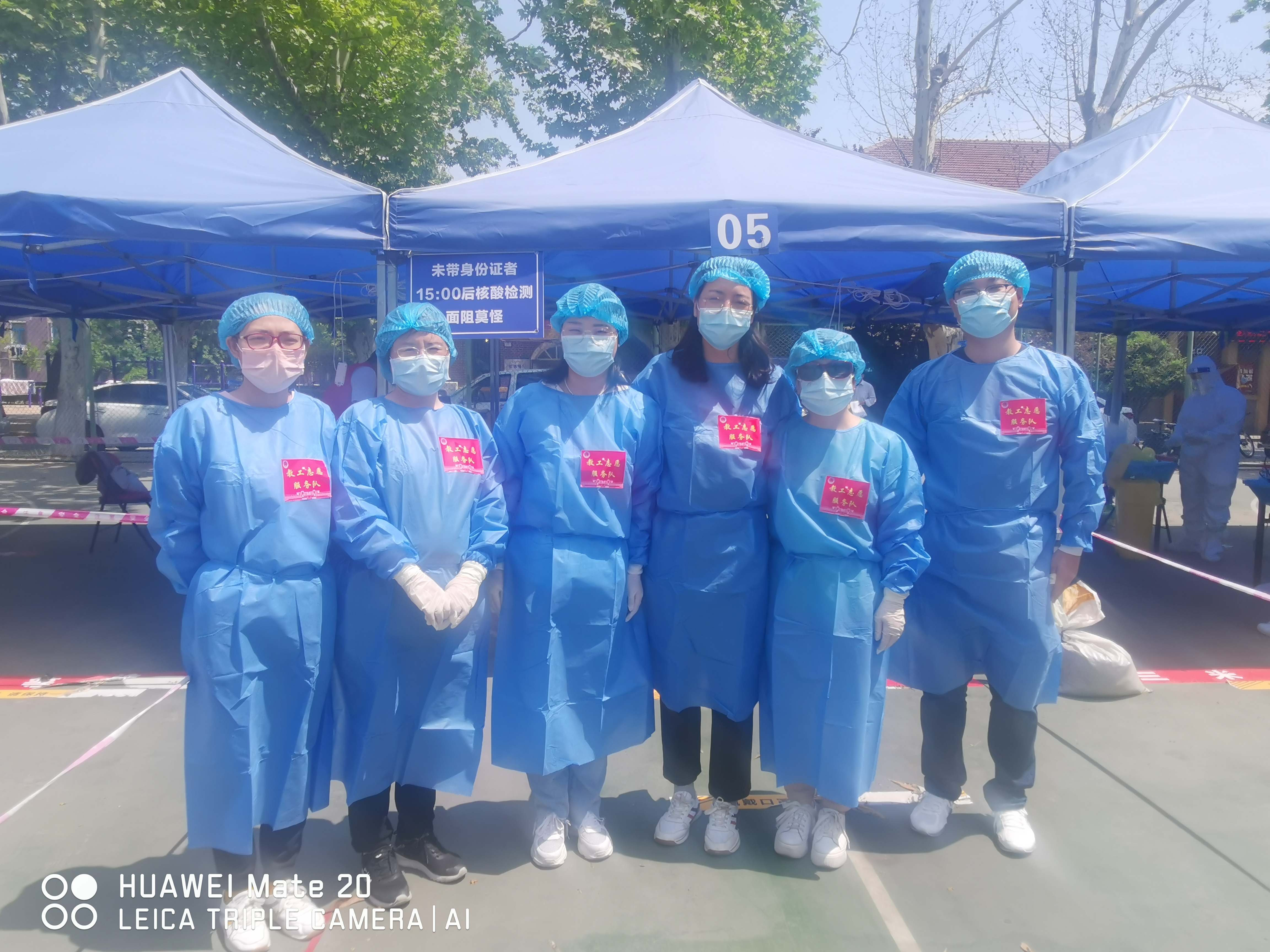 本科生党支部和研究生党支部教工党员深入学校各个角落,一面检查校园防护措施,严防外来人员闯入校园,一面督促提醒师生戴好口罩,普及防疫知识。生物党支部和食品党支部组成的核酸检测服务队分布在14个核酸检测通道,负责引导侯检队伍,监督侯检人员间隔一米,协调侯检队伍等工作。