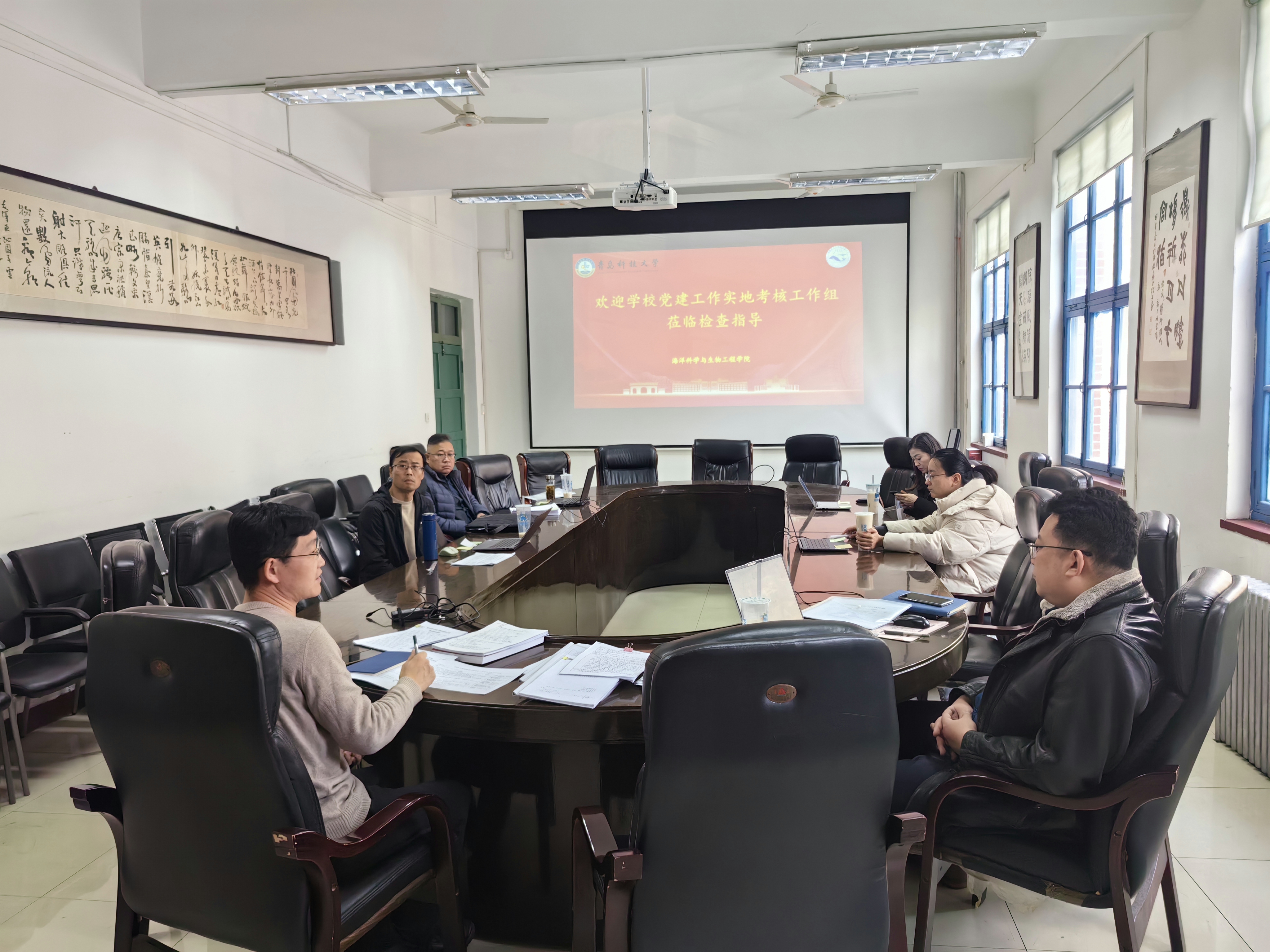 12月5日上午,学校党建工作实地考核组一行5人到海洋学院考核指导。海洋学院党政主要负责人出席会议。